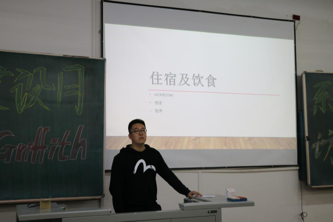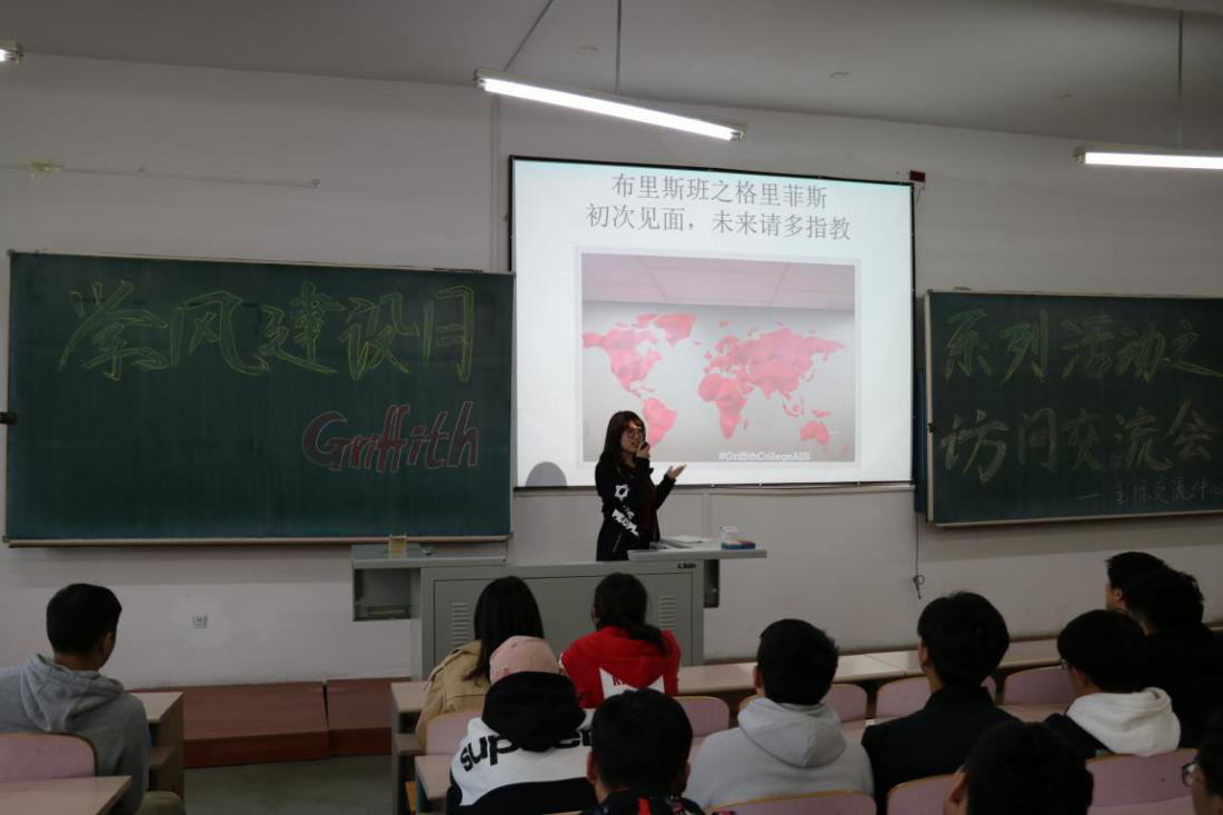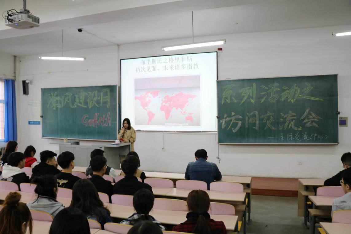 2018年4月16在教学楼A-306举办了学风建设月系列活动之格里菲斯访问交流会,邀请了在格里菲斯杯演讲比赛中获得前三名的同学在访问完格里菲斯大学之后分享交流经验,为今后同学们出国提出了宝贵意见,同时也极大的激发了同学们的出国热情。